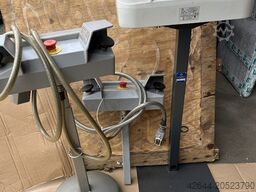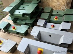 Two-hand control consoles, various versions, some equipped with emergency stop button, green or grey, some with stand, as shown in the photos. Price refers to green console without button.